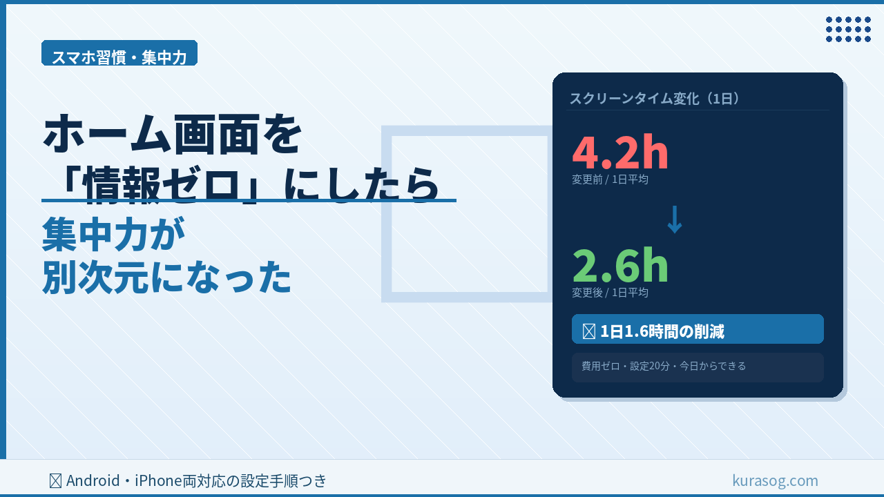 ホーム画面の情報を減らすだけで「なんとなく開く」がなくなる。費用ゼロ・設定20分・今日から始められる。